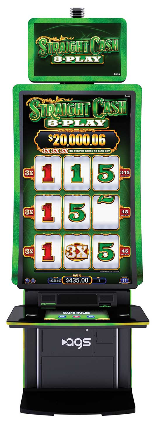 Triple the reels, triple the action. Straight Cash 3-Play™ takes the simplicity of the original Straight Cash® and supercharges it with three additional reel sets, delivering triple the anticipation and triple the win-what-you-see excitement. Players instantly feel the boost in energy as each set of reels showcases unique numbers that combine into credit prizes, amplified by special features designed for high-impact, fast-paced play. At the heart of the experience is the red duplicating number on reel one and the 3x multiplier on reel two, which can combine up to 27x. Respin tags are also added for extra chances at landing big-number combinations.