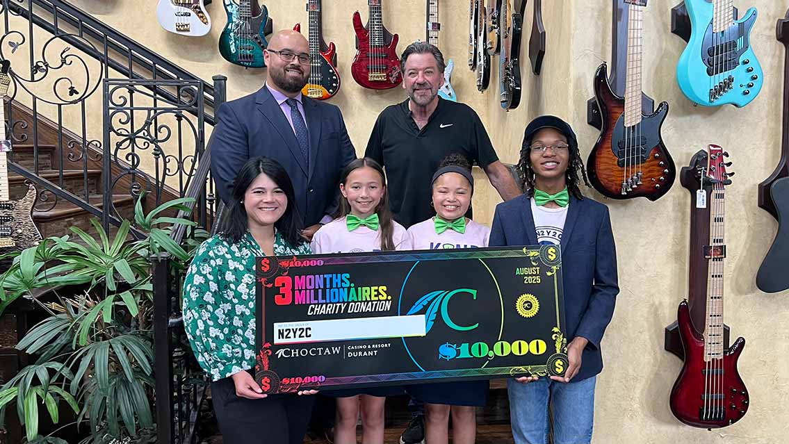 DURANT, OK – Choctaw Casino & Resort – Durant made a $10,000 donation to Never Too Young To Care (N2Y2C), a charity started by 18-year-old Jaxson Turner, to benefit from the Choctaw Casino &  Resort – Durant’s  “3 Months. 3 Millionaires” promotion. The donation was made by Choctaw Casino & Resort – Durant on behalf of its August “3 Months. 3 Millionaires” winner, Tarek S., a father of three from The Colony, TX.