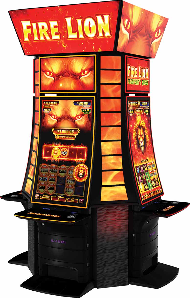 Fire Lion™ features dual volatile themes – Prosperity Queen™ and Prosperity King™ – each offering two uniquely thrilling free spin experiences designed to maximize player engagement and win potential. Six fiery orbs trigger a traditional hold-and-spin bonus with opportunities for retriggers and jackpots. Land a fire lion in the hold-and-spin bonus to trigger the nested Fire Lion bonus, which presents a separate set of five reels. Players can land lions for credits or the gold lion to win the Fire Lion jackpot. Fire Lion is available on Everi’s for-sale portrait cabinet Dynasty Sol™ with signage and merchandising optional.