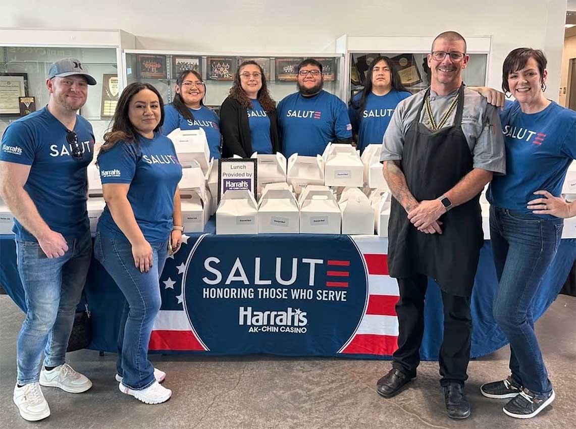 Continuing a tradition of corporate giving and community engagement, Harrah’s Ak-Chin Casino team members also supported the Maricopa Veterans Day Parade. The culinary team prepared 300 box lunches, which Salute members served to veterans attending the event.