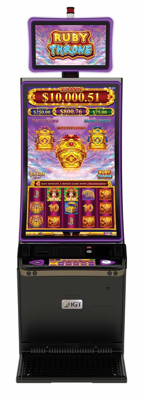 With multiple bonus options and a linked progressive jackpot, IGT’s Jin Ling Link brings players a range of entertaining gameplay options. Available in two partner themes, Emperor’s Throne and Ruby Throne, Jin Ling Link features engaging bonuses that can be combined with hammer triggers, expanding reel matrices, and the accumulation of multipliers. During the base game, when purple, red, or blue hammer symbols are landed, the corresponding bonuses – Multipliers, More Rows, or More Spins – are triggered. During the More Rows bonus, hammers can unlock rows and grow up to a 9×5 grid configuration for bigger win potential. The Multipliers bonus features a multiplier meter, where grand and major gem symbols landed reveal additional multipliers, and hammer symbols landed unlock additional rows up to a 5×5 matrix. The More Spins bonus awards four free spins and features coins with credit values, jackpot coins, and hammers. Jin Ling Link is a 243-payline, 60-credit cost-to-cover game available on IGT’s Rise55™ cabinet.